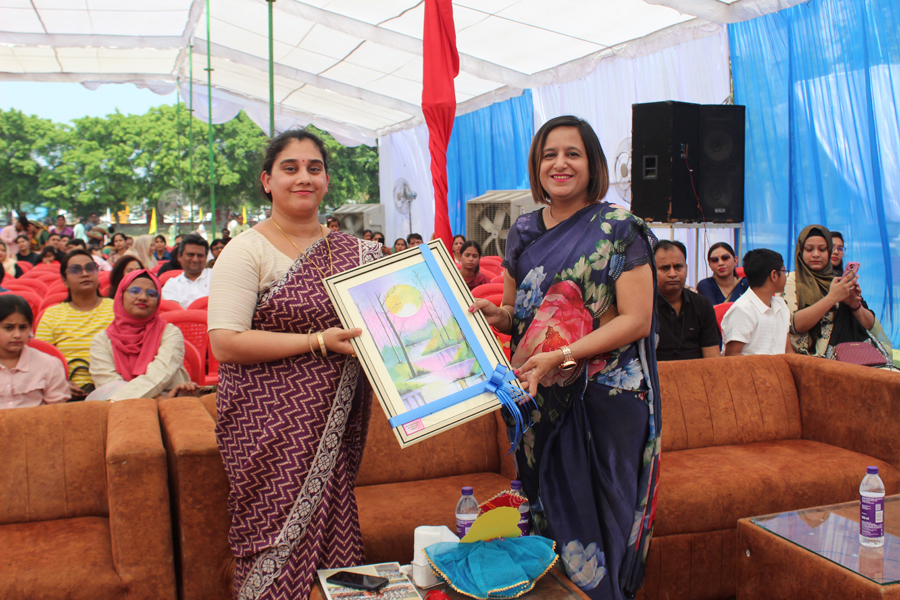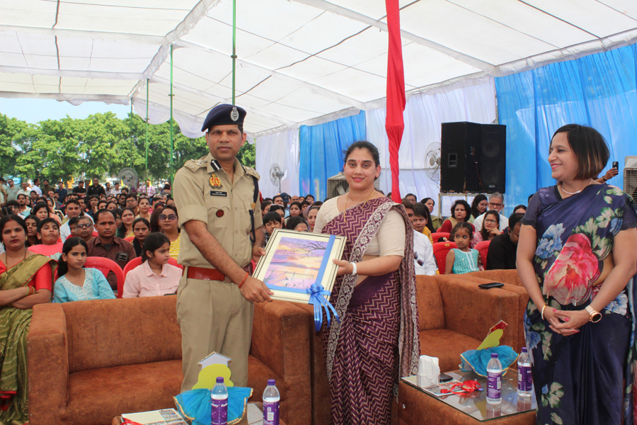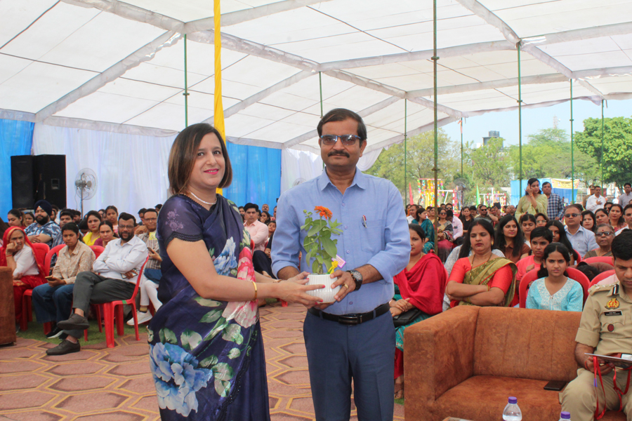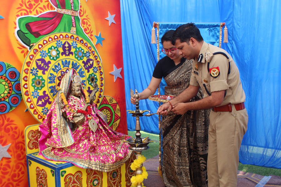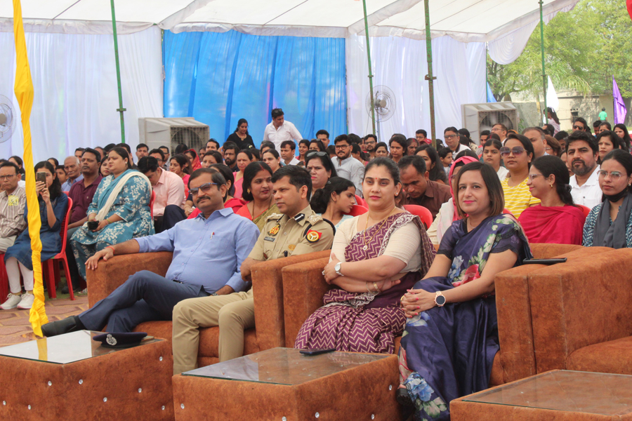 The ceremony commenced at 9:00 a.m. with a warm welcome extended to the Principal, Mrs Rajani Singh, Vice-principal, Mr Sharad Agarwal, teachers, and students. The inaugural segment featured the lighting of the ceremonial lamp by the Principal and Vice-principal of