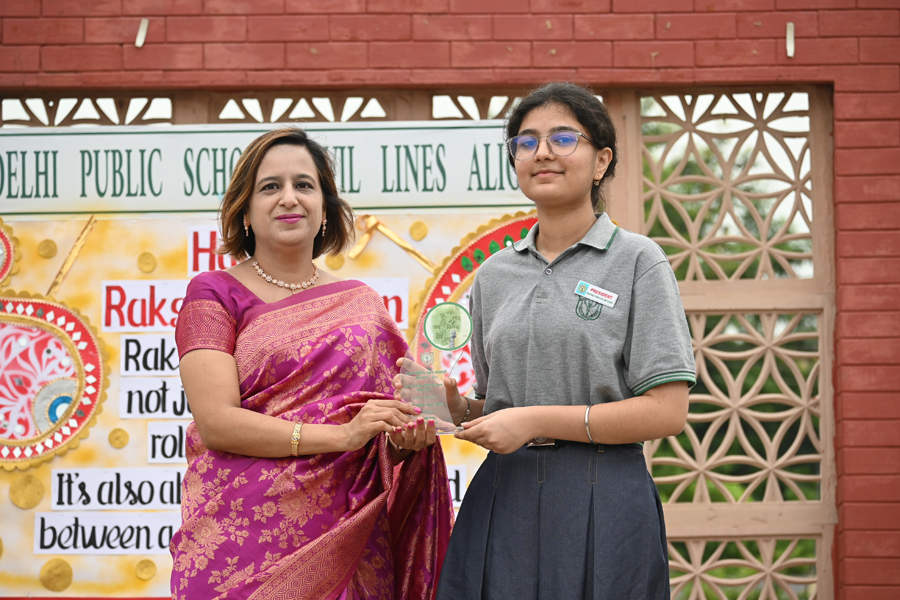 The ceremony began with the Lighting of the Lamp followed by Saraswati Vandana. The principal felicitated the student council. Students were filled with enthusiasm. Principal pinned the badges to the prefects of newly elected Student Council.