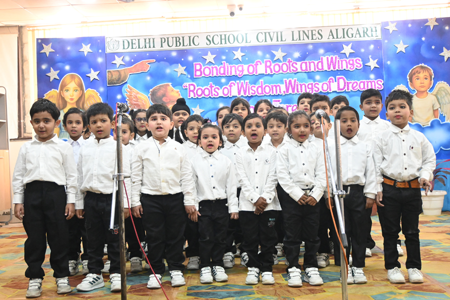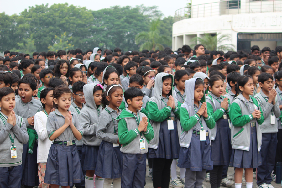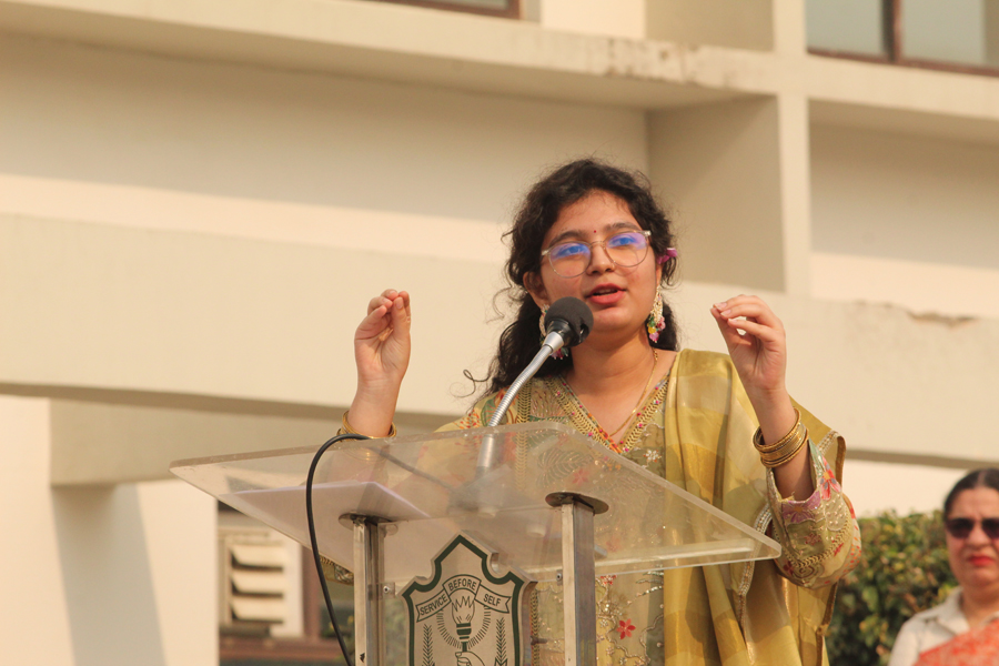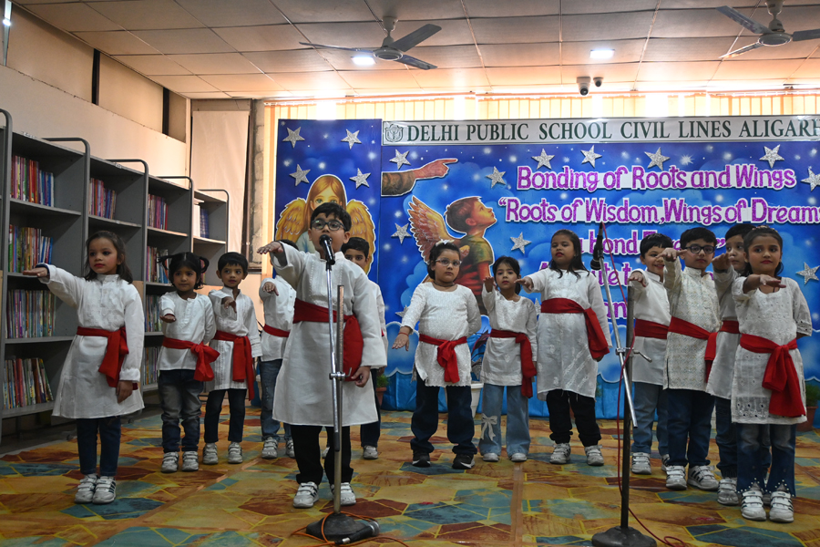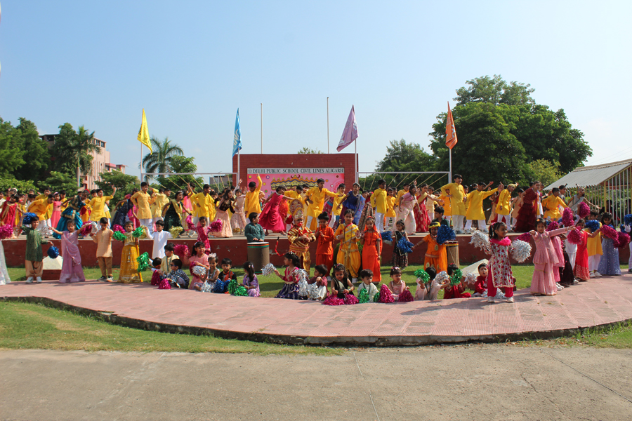 The school choir presented two melodious renditions. The classical tone of RaagJaunpuri in Teentaal and a motivational song seta tone of solemnity and dedication.The mesmerizing Bihu danceby the students also captivated the gathering with their dance presentation and