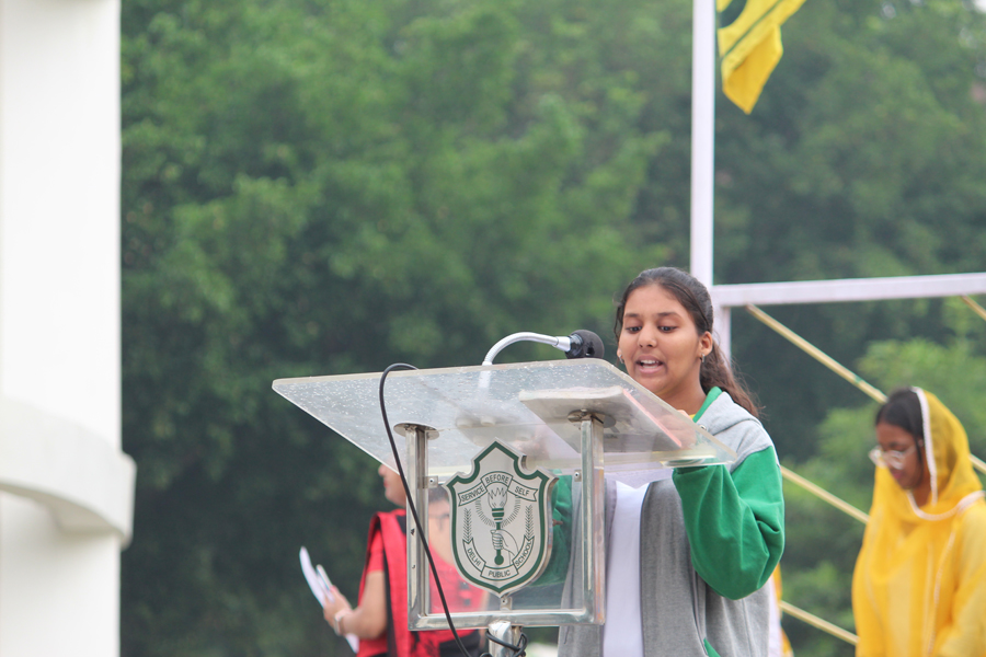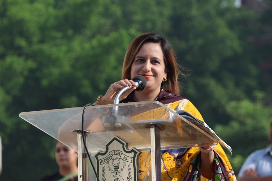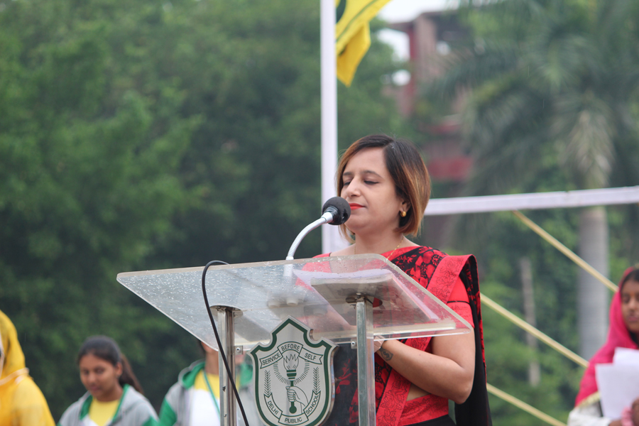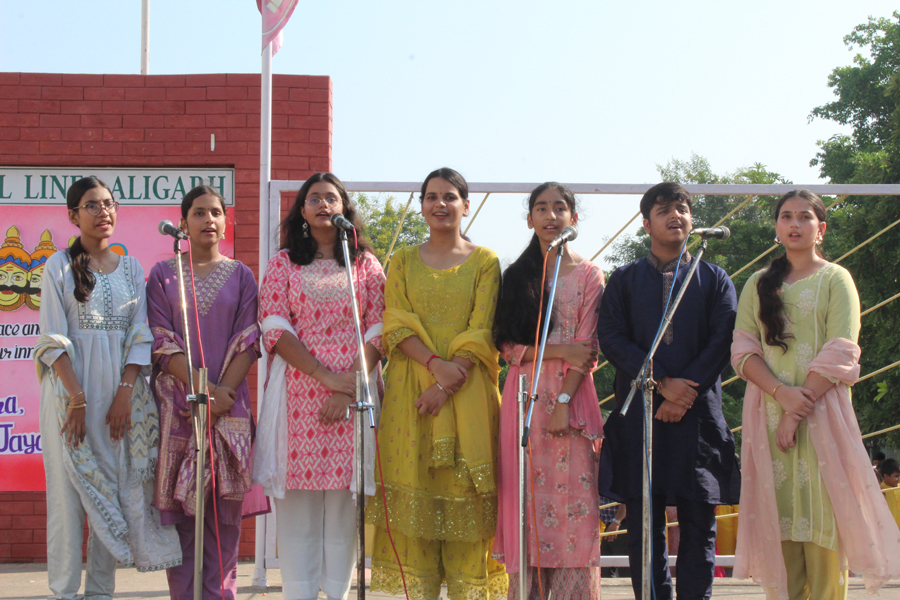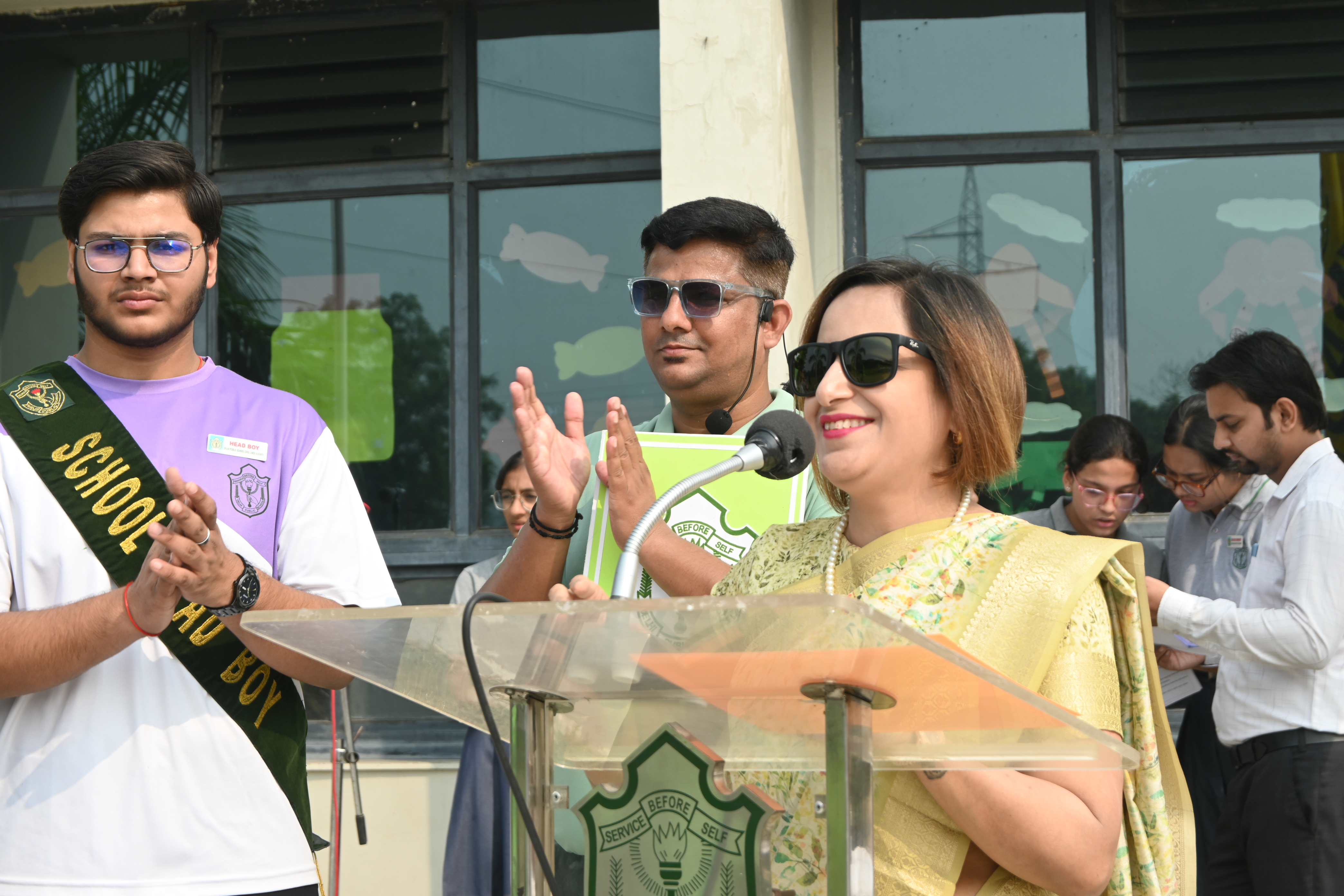 The ceremony commenced at 9:00 a.m. with a warm welcome extended to the Principal, Mrs Rajani Singh, Vice-principal, Mr Sharad Agarwal, teachers, and students. The inaugural segment featured the lighting of the ceremonial lamp by the Principal and Vice-principal of