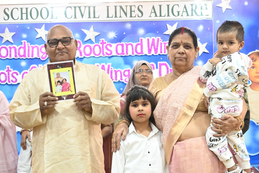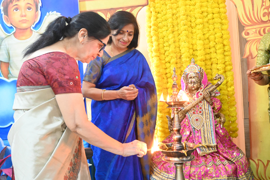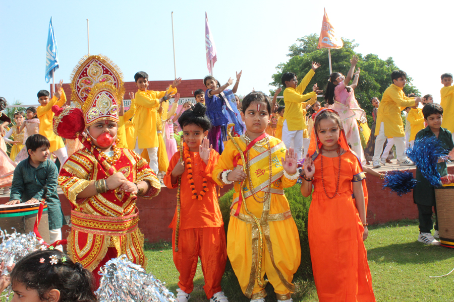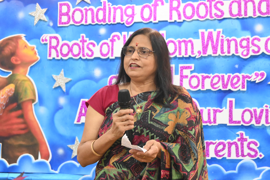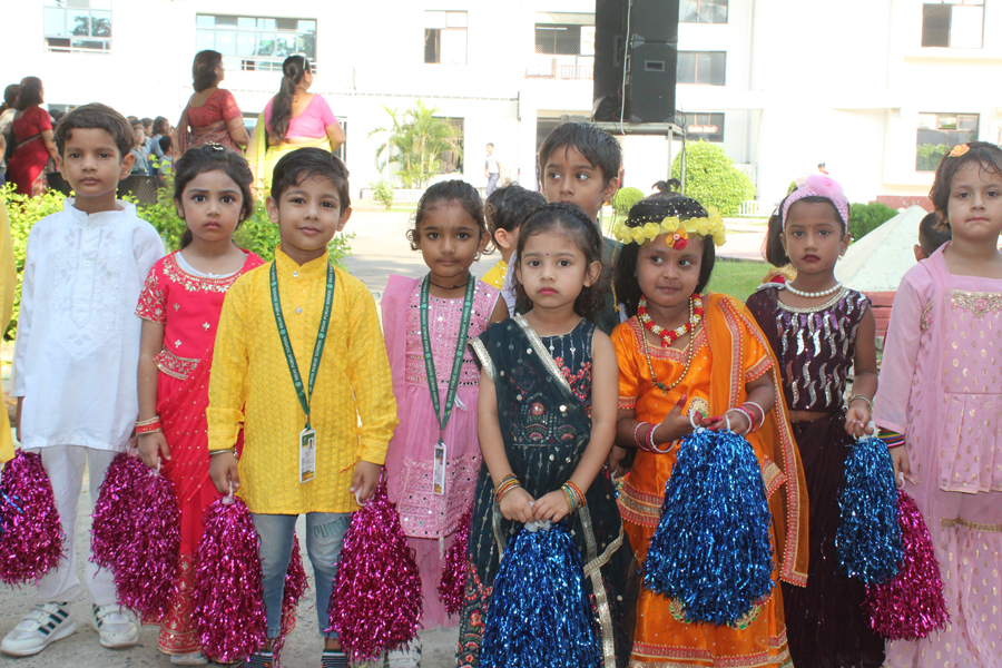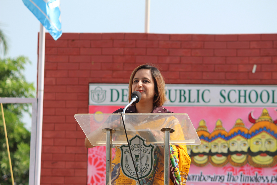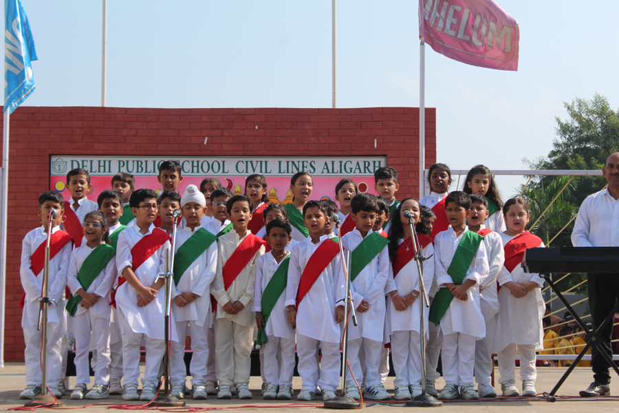 The ceremony commenced at 9:00 a.m. with a warm welcome extended to the Principal, Mrs Rajani Singh, Vice-principal, Mr Sharad Agarwal, teachers, and students. The inaugural segment featured the lighting of the ceremonial lamp by the Principal and Vice-principal of